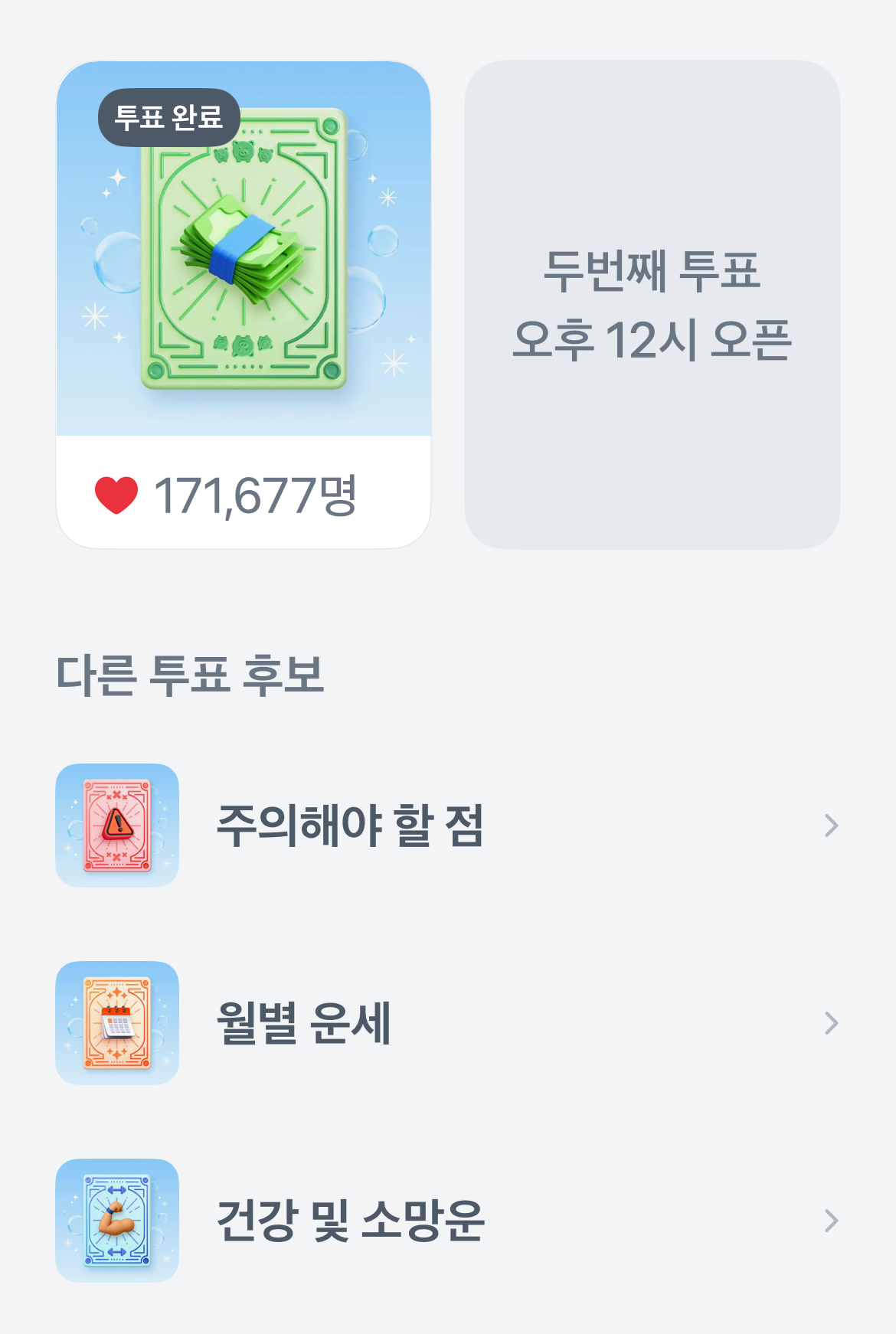 또한 오전과 오후에 두 번 투표할 수 있어 참여 기회도 많고, 소소한 재미가 일상에 활력을 더해줍니다.