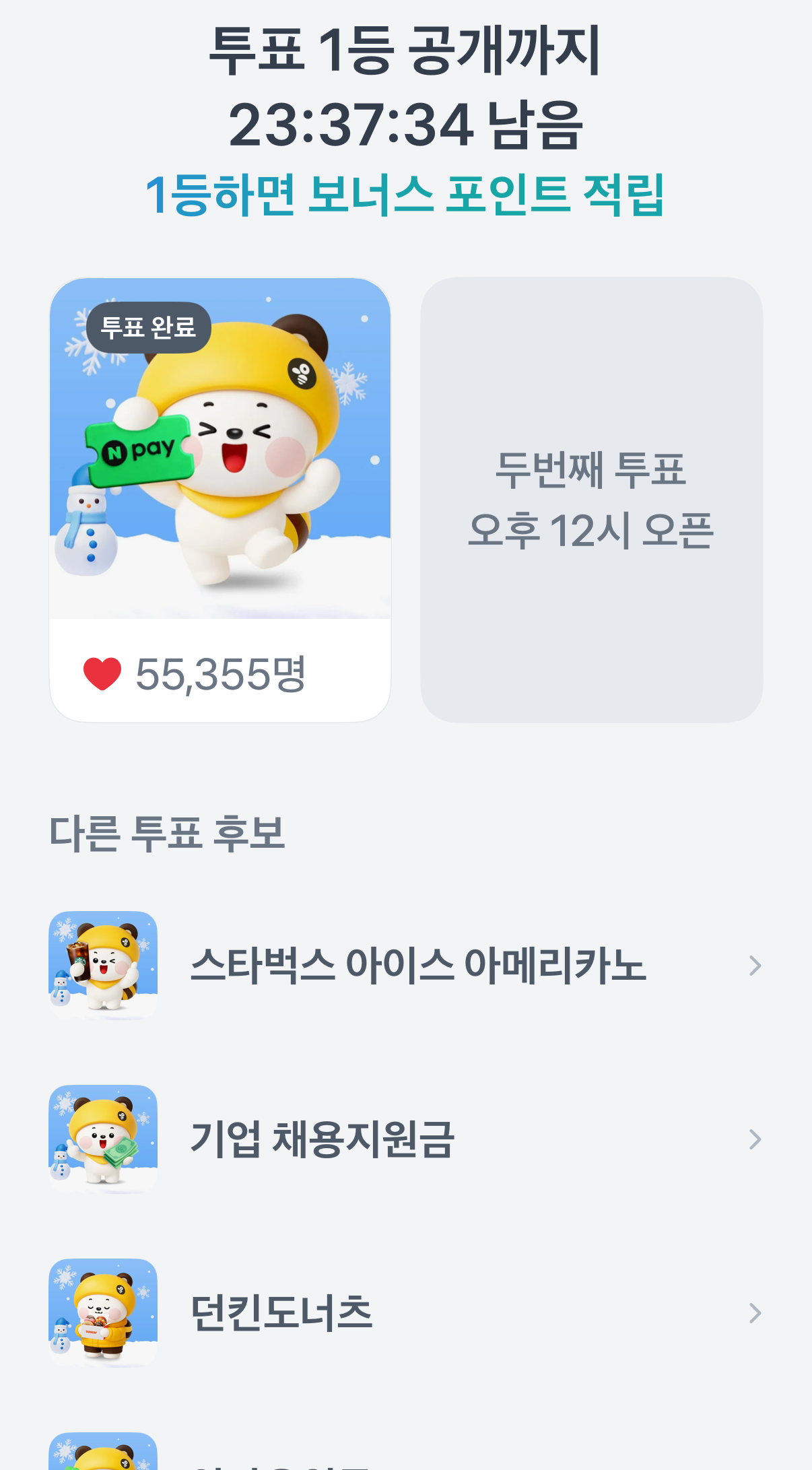 오전 기준 ‘네이버페이 포인트’가 가장 많은 선택을 받았고,