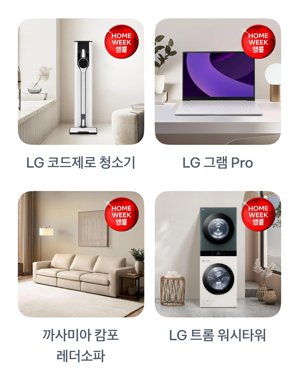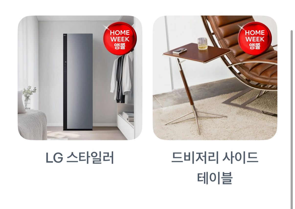 프리미엄 가전 브랜드 LG의 대표 제품들과 함께, 감각적인 디자인으로 인기를 끄는 까사미아 가구도 포함됐죠.