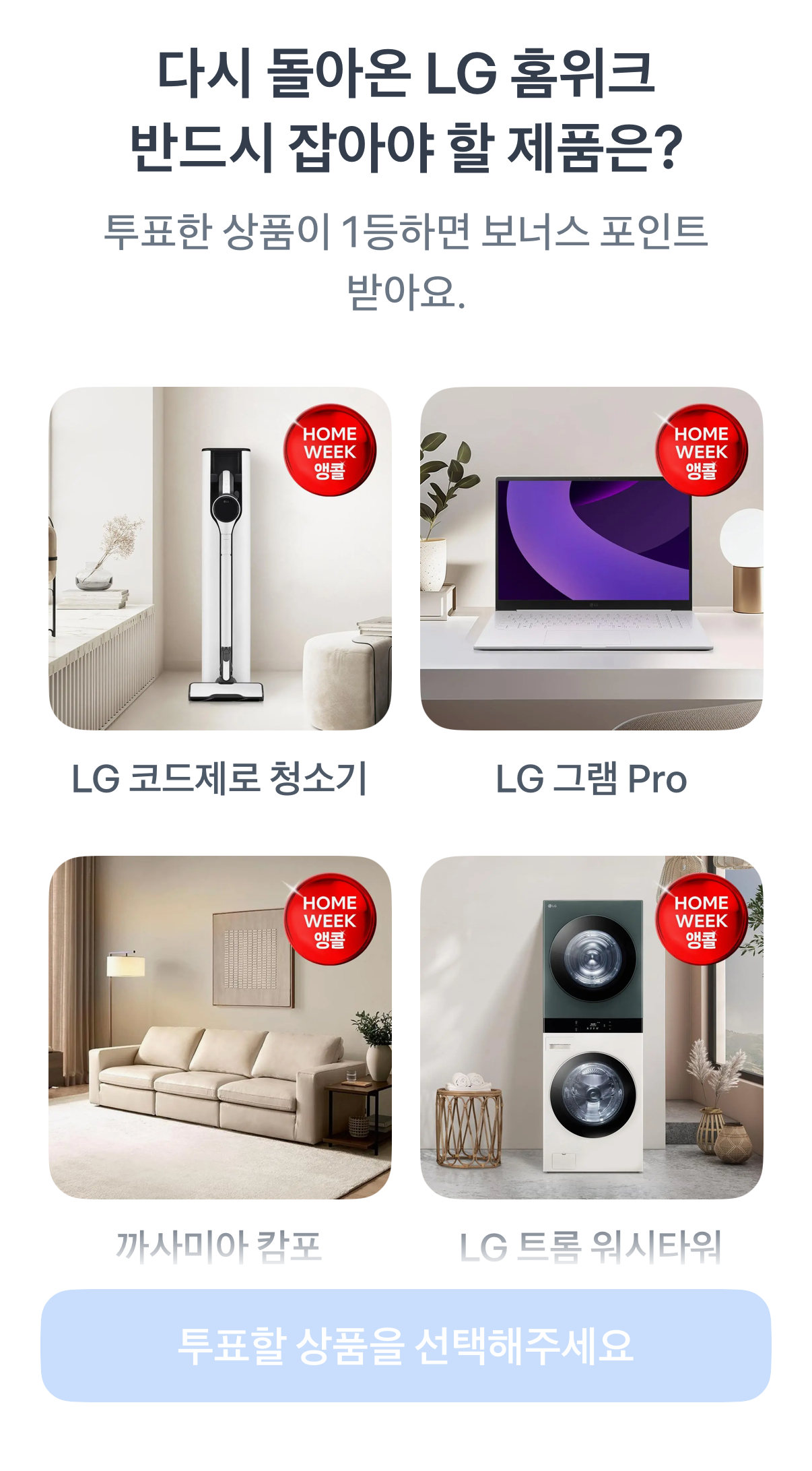 오늘의 질문은 “다시 돌아온 LG 홈위크, 반드시 잡아야 할 제품은?”이었습니다.